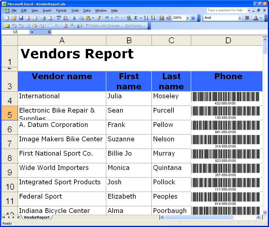 VendorReport exported as an Excel document. |