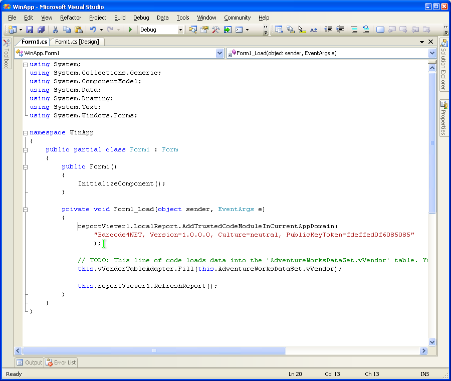 This tutorial presents how to display barcodes, created with Barcode4NET, in Windows Forms local reports.