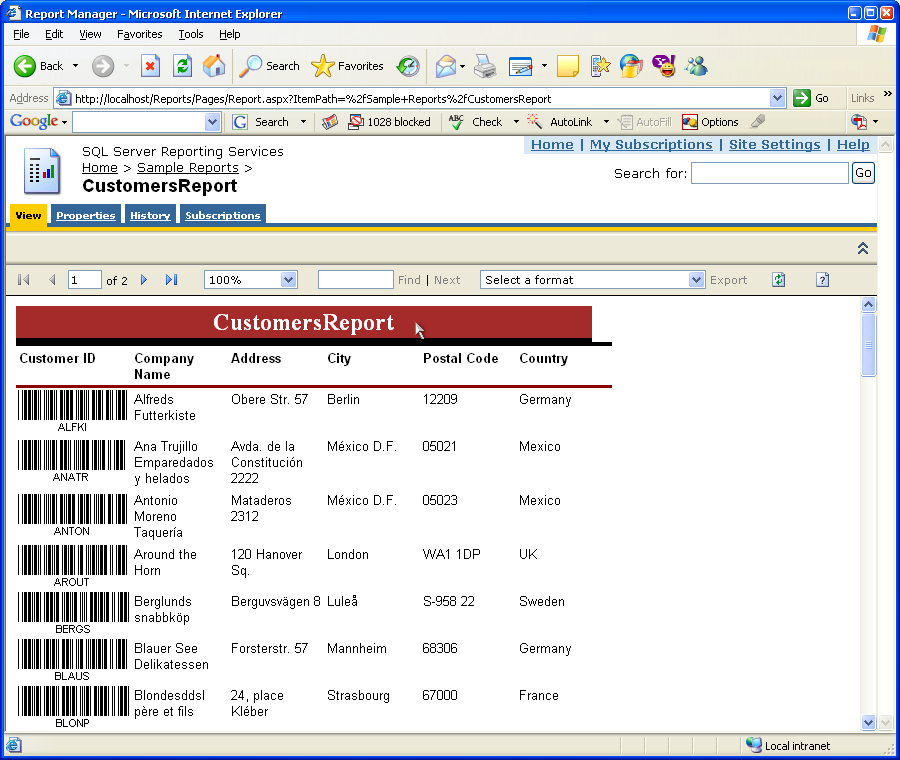 This tutorial presents how to display barcodes, created with Barcode4NET, in SQL Server Reporting Services 2000 reports.