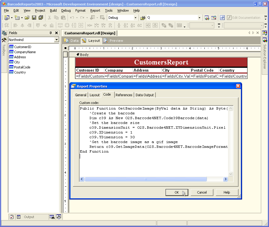 This tutorial presents how to display barcodes, created with Barcode4NET, in SQL Server Reporting Services 2000 reports.