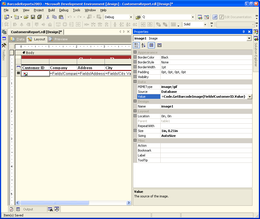 Value = =Code.GetBarcodeImage(Fields!NationalIDNumber.Value) (the = sign must appear in front of Code keyword).