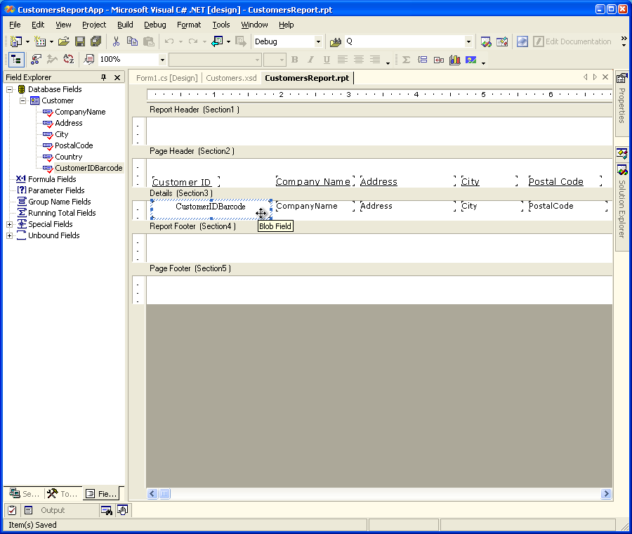 | 10. Make sure the report is displayed in design mode. Expand the Database fields item on the left and drag the fields in the Details section of the report. |