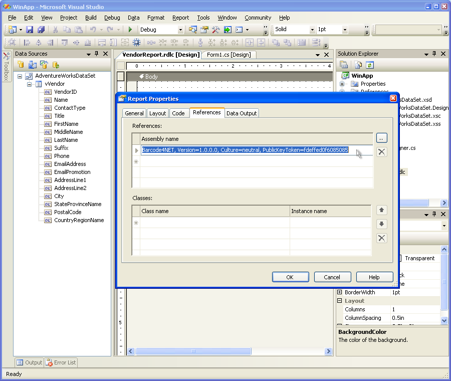 | This tutorial presents how to display barcodes, created with Barcode4NET, in Windows Forms local reports. |