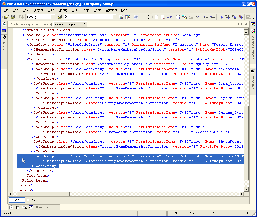 10. Configure the SQL Reporting Services 2000 security policy to allow Barcode4NET to run in the report context.