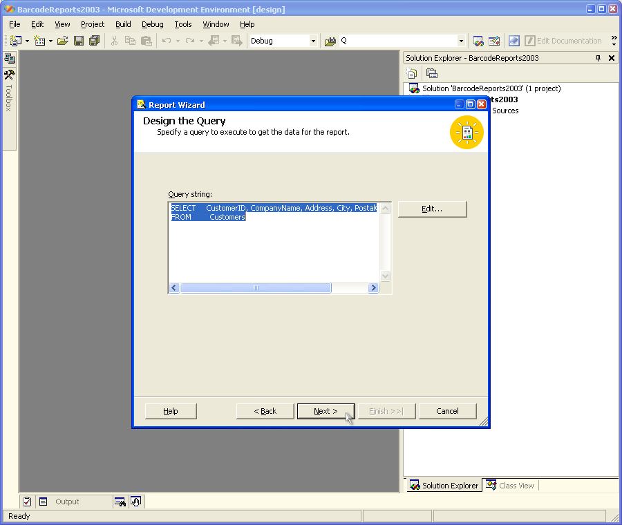 | This tutorial presents how to display barcodes, created with Barcode4NET, in SQL Server Reporting Services 2000 reports. |
