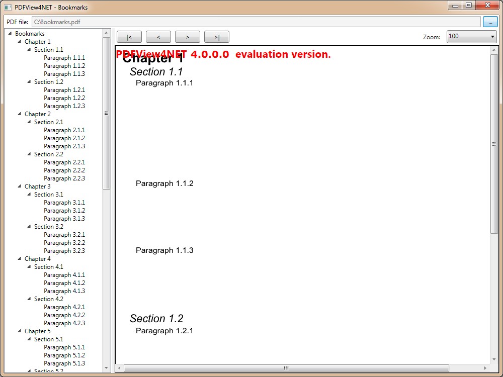 PDFBookmarksView WPF control at runtime